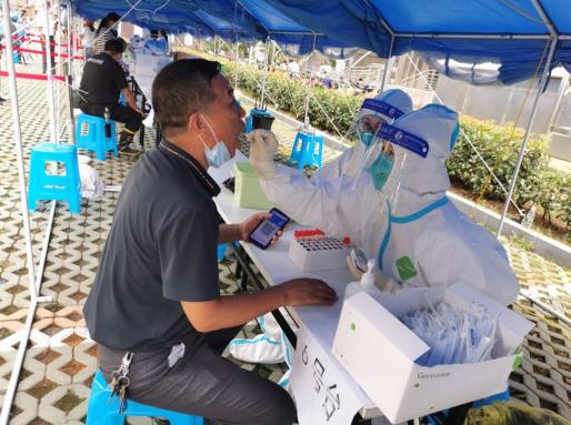 核酸檢測(cè)現(xiàn)場(chǎng)的工作人員合影
