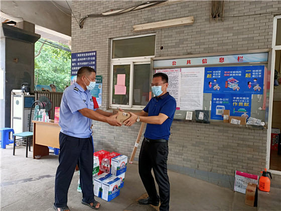 8月5日,棲霞社區(qū)黨員陳來寶來到九鄉(xiāng)河小區(qū)與楓翔小區(qū)的防疫檢查站,為疫情防控一線值守人員送上6箱礦泉水、1箱冰棒、4箱牛奶,為疫情防控貢獻(xiàn)力量。他表示:“自疫情發(fā)生以來,社區(qū)黨員干部始終戰(zhàn)斗在抗擊疫情的第一線,為了保障人民群眾的生命健康安全,每日加班加點進(jìn)行疫情防控工作。作為一名共產(chǎn)黨員,我應(yīng)當(dāng)發(fā)揮表率作用,盡自己的綿薄之力,協(xié)助防疫工作人員,黨民同心,共同渡過疫情難關(guān)。”森林公安李齊天老師也拖著一車物資到卡點捐贈。“感謝曹阿姨送來清涼爽口的糖片、檸檬片”“感謝志愿者送來的4箱口罩、1箱消毒水”······微信群里紛紛點贊。除此之外,還有很多的愛心居民、企業(yè)也給社區(qū)送來了防疫物資,例如仙林碧水源污水處理廠、棲霞古寺、宏鼎裝飾城、棲霞車隊等。