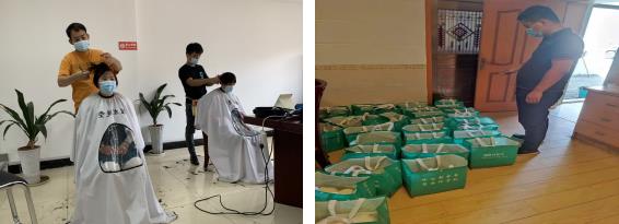 村長(zhǎng)平晨為志愿者解決“頭”等難題,捐贈(zèng)熱食包子等物資
