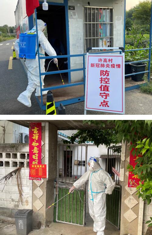 “我之前有過防疫、消殺經(jīng)驗,所以我申請一線消殺工作!”就這樣,李旻和兄弟李偉組成了“許高村消殺志愿小隊”,專門負責(zé)1個檢測點、9個值守點、22個居家觀察戶的消殺工作。33℃的高溫,厚重的防護服,每天5:30出發(fā)、17:30再次出發(fā),一天兩次全程14公里,40多斤的消殺桶,128次的背起、脫下。身上的衣服濕了又干,干了又濕。弟弟李偉指著哥哥李旻說:“這幾天我哥的大肚腩都‘脫水’瘦下來了。”