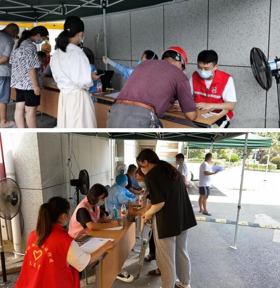 該村工作人員嚴(yán)格按照相關(guān)工作部署,及時(shí)落實(shí)工作安排,制定明確方案,合理分工。在土橋醫(yī)院接種點(diǎn),從等候區(qū)到排隊(duì)區(qū),均設(shè)置了一米安全間隔線,避免人群聚集風(fēng)險(xiǎn)。排隊(duì)處、登記處、接種處、觀察區(qū)……各個(gè)點(diǎn)都有該村工作人員的身影,他們一直堅(jiān)守在自己的崗位上,幫助醫(yī)護(hù)人員進(jìn)行疫苗接種相關(guān)信息登記、為村民們發(fā)放疫苗接種憑證并維持現(xiàn)場(chǎng)的排隊(duì)秩序。盡管外面天氣炎熱,他們卻沒有喊苦喊累,時(shí)刻做好人民群眾安全保障工作。