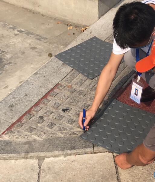 志愿者早早地就帶上了盲道貼紙,來到了堯和西路盲道旁,公眾委員也積極參與進來,因電阱蓋被阻斷的盲道粘貼了盲道貼,缺少的阻斷的盲道也完成了修復,雖然修復工作十分的麻煩,但志愿者們和公眾委員們也不必辛苦,辛勤服務,努力保障盲人的安全出行。希望能夠修復更多的不規(guī)范盲道。