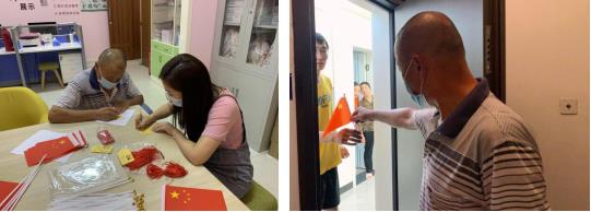 在活動前夕,清風園小區(qū)26棟“樓棟銅掌柜”歐光余與社會工作者一起親自寫邀請卡片,同時,先社會工作者一步,給所在樓棟兩個單元的家庭發(fā)送了活動邀請卡和小國旗,并向居民解釋了活動信息。