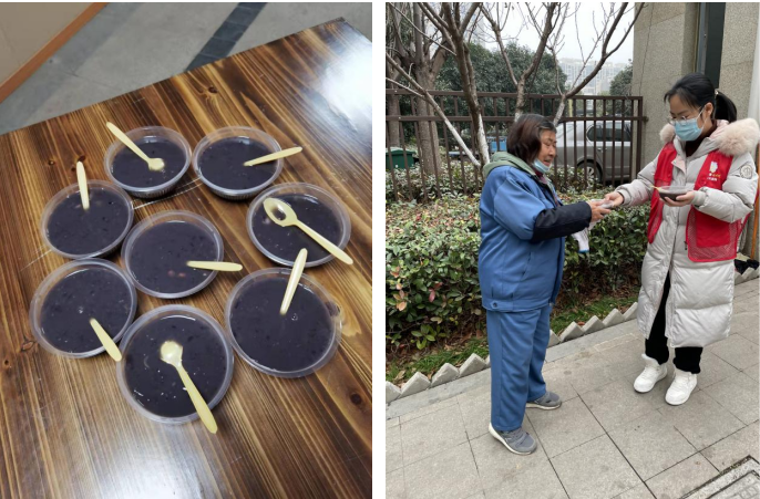 一早,轄區(qū)黨員志愿者來到社區(qū)活動(dòng)室用薏米、紅棗等熬制臘八粥。經(jīng)過兩個(gè)多小時(shí)的精心熬制之后,志愿者們將香氣撲鼻的臘八粥打包好,送至保潔人員與環(huán)衛(wèi)工作者的手中。“你們辛苦啦,這么冷的天還堅(jiān)守在崗位上,今天臘八節(jié),我們送上一碗臘八粥,希望你們喝下暖暖的粥,新一年萬事‘粥’全,諸事皆順。”黨員志愿者的話語,讓寒風(fēng)中為了街面整潔的環(huán)衛(wèi)工作者、保潔人員感到十分暖心。