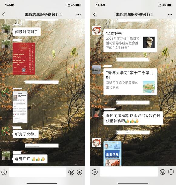 在閱讀群內(nèi),社區(qū)居民對(duì)每日12本的推薦書(shū)籍表達(dá)了個(gè)人的感受,線上的閱讀不僅豐富了閱讀的視野,對(duì)黨的政策理論加強(qiáng)了了解,更方便了大家對(duì)閱讀資源的查找,這是實(shí)實(shí)在在為社區(qū)“書(shū)蟲(chóng)”們提供了精神食糧。