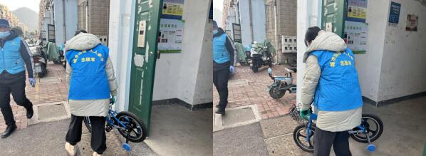1月17日上午,五福家園社區(qū)城治委志愿者在日常巡查中巡查發(fā)現(xiàn),個別樓道門口還是存在居民隨意堆放雜物的問題,當下志愿者就聯(lián)系相關居民清理門口雜物,把違規(guī)停放的自行車電動車輛搬出樓道,并停放到指定區(qū)域。