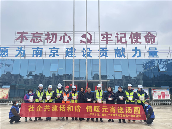 南京市棲霞區(qū)棲霞街道江南廠社區(qū)黨支部組織退休老黨員和棲霞街道總工會到工地舉辦共建活動。在元宵節(jié)夜晚,一家人齊樂融融的聚在桌旁吃飯共看明月是所有中國人都盼望的場景,考慮到廣大民工朋友無法回家過節(jié),2月15日社區(qū)聯(lián)合街道總工會在建設(shè)者之家舉辦了“黨建共建同心圓,共同歡度鬧元宵”活動,邀請周邊工地民工參與。