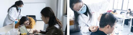 在候診區(qū)里,前來咨詢就診的居民排起了隊,醫(yī)院的專家們?yōu)榫用襁M行中醫(yī)體質(zhì)辨識,解答居民對常見病的咨詢,普及中醫(yī)養(yǎng)生保健知識。護理人員帶來了各種中醫(yī)特色適宜技術(shù)給現(xiàn)場居民體驗,如刮痧、針灸、推拿按摩等,并回答大家現(xiàn)場問詢、發(fā)放健康宣傳資料等。同時,安排有不適感的居民參加中醫(yī)治療,有的居民群眾感到腰間盤不適,中醫(yī)師針其問題進行了中醫(yī)推拿按摩,專業(yè)的按摩手法有效緩解了居民的腰背不適,居民表示“還是中醫(yī)好,按一按就舒服了很多,這下不用吃西藥了!”還有的群眾落枕,中醫(yī)師也針對其脖子酸痛的問題開展針灸,合理刺激穴位之后,酸痛感也得到了緩解。