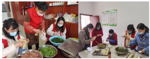 社區(qū)志愿者們帶領(lǐng)殘疾人們一起搟餃皮、剁肉餡,制作現(xiàn)場,動作熟練的教導(dǎo)動作不熟練的,及時傳授包餃子的小技巧。居民王阿姨對志愿者小陳說:“封餃皮的時候要蘸一點水,這樣餃皮能粘得牢,下鍋煮的時候才能成型。”大家齊心協(xié)力、配合默契,活動現(xiàn)場一片祥和。