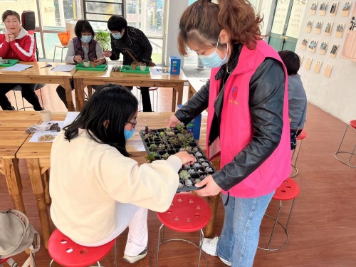最后園藝?yán)蠋熛虼蠹医榻B了多肉植物的形態(tài)特征、主要品種、生長(zhǎng)特點(diǎn)以及多肉的日常養(yǎng)護(hù)方法,并現(xiàn)場(chǎng)示范了正確栽種多肉綠植的方法。女同胞們認(rèn)真聆聽,仔細(xì)觀察,在動(dòng)手種植環(huán)節(jié),大家變身妙手花匠,小心翼翼地找準(zhǔn)位、扎穩(wěn)根、埋好土、植多肉,在動(dòng)手的過程中展示出豐富的創(chuàng)造力,打造出各具特色的“綠色盆景”。