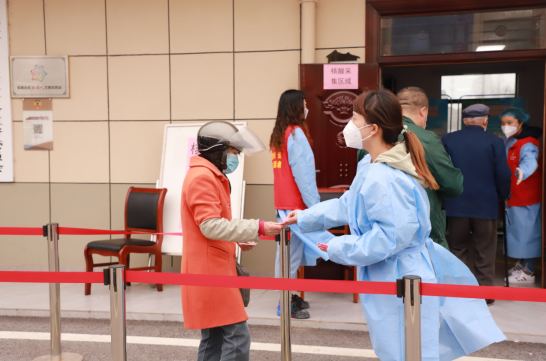 張施長期駐點在東陽社區(qū)居家養(yǎng)老服務(wù)站,平時為社區(qū)的老年人服務(wù),在去年和今年的疫情防控中,她積極主動報名成為志愿者,為疫情防控風(fēng)險自己的一份力量。在得知東陽社區(qū)缺少志愿者時,她主動向主管申請能否多派人到該社區(qū),她的這一請求,得到了主管王慶榮的支持,王慶榮帶來了另外兩名服務(wù)人員,一起加入了東陽社區(qū)志愿者隊伍。