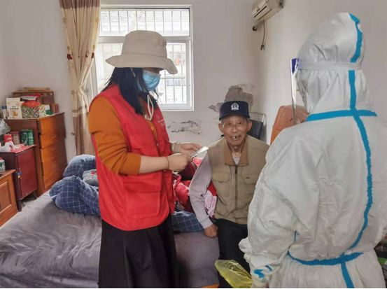 村書記張小祥,第一書記袁錚杰一早便來到核酸檢測現(xiàn)場開展工作,奔忙在核酸檢測現(xiàn)場第一線,囑咐村民群眾嚴格遵循核酸檢測規(guī)定,前后保持一米安全距離。其他志愿者們則拿著喇叭在村內(nèi)喊話,呼吁村民主動進行核酸檢測,為確保不漏一戶、不漏一人,醫(yī)護人員和志愿者還為村里老弱病殘等出行不方便的村民提供上門采集核酸服務(wù),他們來到行動不便的村民家中,向他們傳達政府防疫工作,并提供核酸采樣服務(wù)。