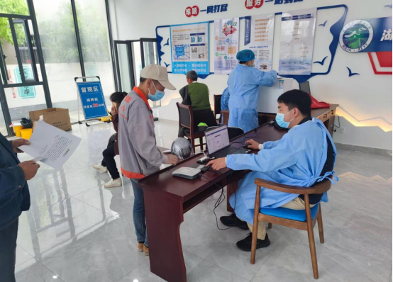 在接種現場,志愿者排好桌椅、拉好電源線,張貼好指引標示,為村民填寫接種信息,在現場積極做好各項從旁協(xié)助任務。在抗擊疫情的過程中,志愿者不可或缺,是除了政府救助之外民間互助的重要力量,志愿者們默默無聞,充當橋梁,既為村民提供了方便,也讓醫(yī)務人員能夠心無旁騖,專心投入工作。