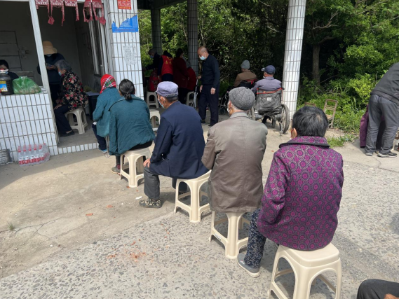 社區(qū)以關(guān)注老年人生活健康為導(dǎo)向,開(kāi)展國(guó)際家庭日系列主題活動(dòng),進(jìn)行疫苗接種。在接種現(xiàn)場(chǎng),考慮到老年人的身體狀況,社區(qū)貼心準(zhǔn)備板凳,將其按照安全距離一字排開(kāi),緩解老年居民排隊(duì)等候時(shí)的疲累。