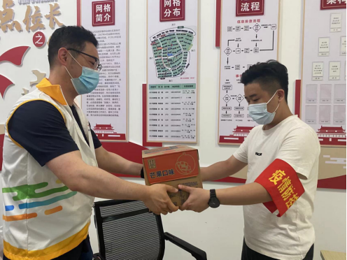 下午14:00,社區(qū)團總支組織轄區(qū)團員及青年志愿者赴社區(qū)防疫一線慰問疫情防控工作人員。團員及志愿者們帶著一箱箱礦泉水等物資,為他們送去夏日的一份清涼,并主動幫助他們從事力所能及的疫情防控工作內(nèi)容,幫他們分擔、減負。“太感謝這些志愿者們了,雖然天氣炎熱,但是疫情防控絕對不能松懈。”一線人員說道。