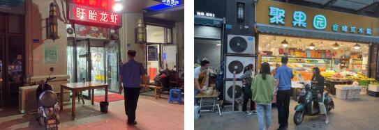 與此同時(shí),部分餐飲店門前坐吃問題、水果店門前溢攤問題也有所反彈,違規(guī)擺放的餐桌餐椅、籮筐等物品占用了公共空間,影響了居民通行。對(duì)此城管隊(duì)員與城市治理公眾委員、志愿者形成合力,加大晚間門面房巡查力度,不定時(shí)開展門店突擊檢查,督促店家整改違規(guī)問題并配合開展門前三包相關(guān)內(nèi)容的宣傳教育,提高治理成效。營造了“還路于民,還靜于民”的良好局面,贏得了周圍居民到一致的好評(píng)。