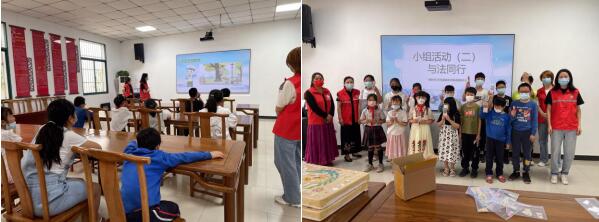 工作人員通過鑒賞“中國夢”郵票,講述政府層面對未成年保護(hù)工作的重視,并重點從未成年權(quán)利、義務(wù)知識展開論述,以視頻的形式讓孩子理解知識點。同時,圍繞作為學(xué)生的青少年學(xué)習(xí)期間應(yīng)遵守的法律知識內(nèi)容,如學(xué)生乘車、行走安全規(guī)定、如何規(guī)范自己的行為、如何自我保護(hù)等。