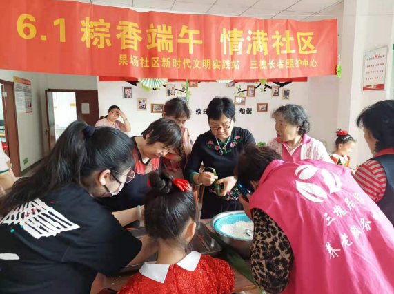 6月1日,南京市棲霞區(qū)馬群街道果場社區(qū)新時代文明實踐站在社區(qū)三槐養(yǎng)老服務(wù)果場站點組織居民與“齊益果”志愿者們一同開展以“我們的節(jié)日·粽香端午 情滿社區(qū)”為主題的端午節(jié)包粽送情志愿活動。