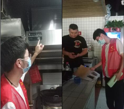 蛇盤社區(qū)工作人員通過(guò)檢查餐飲店油煙清洗臺(tái)賬記錄本,耐心講解做好油煙排放的必要性以及相關(guān)規(guī)范措施,告知店家夏季高溫炎熱,可以適當(dāng)?shù)卦黾觾艋髑逑吹念l次,定期檢修,盡量避免由于高溫而引發(fā)的電路板故障等問(wèn)題。同時(shí),蛇盤社區(qū)環(huán)保志愿者也會(huì)分別在中午和晚上餐飲店最繁忙的時(shí)間來(lái)到餐廳后廚,檢查凈化器排煙口的排放情況,如若出現(xiàn)油煙排放不達(dá)標(biāo)的狀況,便立即督促他們進(jìn)行清洗、檢修。