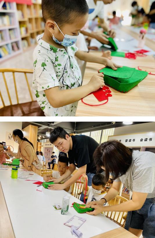 最后,在老師的帶領(lǐng)下,家長和孩子共同制作小紅軍包,孩子們將自己制作的包舉在手中,真有三分“小軍人”的模樣。