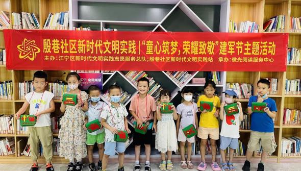 為了紀(jì)念人民解放軍建軍95周年,7月31日上午,南京市江寧區(qū)秣陵街道殷巷社區(qū)新時(shí)代文明實(shí)踐站聯(lián)合江寧區(qū)微光閱讀服務(wù)中心舉辦了“童心筑夢(mèng),榮耀致敬”八一建軍節(jié)主題活動(dòng)。