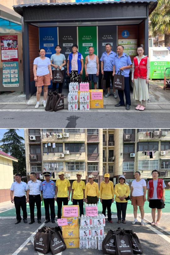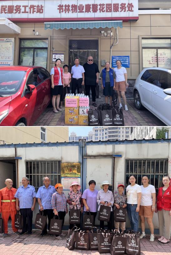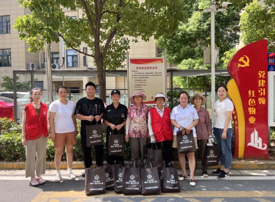 “熱心服務,精心解難”“知百姓冷暖,為百姓謀利”“為民排憂暖人心,抗擊疫情護人民”……一幅幅印著致謝詞的錦旗,和一面面榮譽牌一起,被物業(yè)公司送到了社區(qū),通過這些表達他們對社區(qū)工作人員在疫情防控工作中所做貢獻的感激之情。作為一種雙向的奔赴,社區(qū)準備了礦泉水、飲料在內(nèi)的慰問品,以及包括風油精、花露水、人丹、毛巾等6樣物資在內(nèi)的防暑降溫禮包,送到了物業(yè)工作人員和志愿者的手上,希望在今后的工作中能夠繼續(xù)和物業(yè)工作人員、志愿者攜手,共創(chuàng)和諧家園。