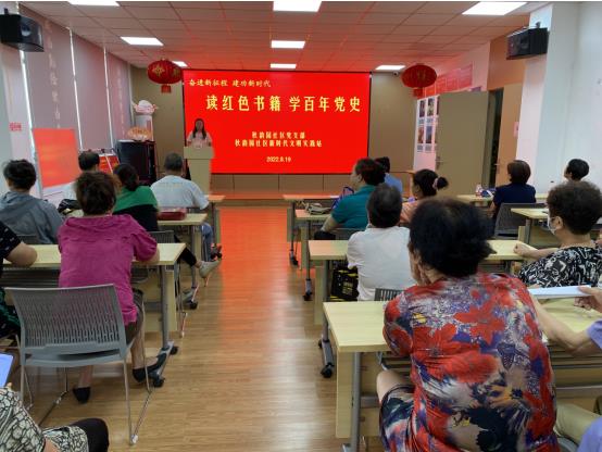 為進(jìn)一步推動(dòng)黨史學(xué)習(xí)教育走深走實(shí),同時(shí)推廣全民閱讀工作,建設(shè)書(shū)香社區(qū),2022年8月19日上午,南京市棲霞區(qū)邁皋橋街道秋韻園社區(qū)黨支部、新時(shí)代文明實(shí)踐站聯(lián)合開(kāi)展“奮進(jìn)新征程 建功新時(shí)代——讀紅色書(shū)籍,學(xué)百年黨史”主題閱讀活動(dòng)。前期,社區(qū)通過(guò)掌上云發(fā)布活動(dòng)通知,吸引了支部黨員、新時(shí)代文明實(shí)踐志愿服務(wù)大隊(duì)志愿者和轄區(qū)少數(shù)民族同胞代表共計(jì)20余人參加。