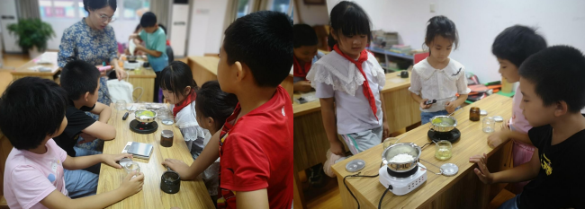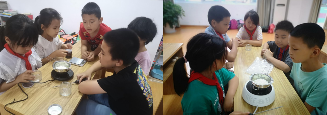 活動(dòng)伊始,青穗學(xué)堂王老師為同學(xué)們進(jìn)行分組,將高年級(jí)與低年級(jí)的同學(xué)們進(jìn)行平均分配,最大程度保證活動(dòng)的安全和進(jìn)度。隨后,同學(xué)們自主選擇心儀的暗花玻璃瓶和配套的蓋子,作為手工制作香薰蠟燭的容器。在王老師的指導(dǎo)下,同學(xué)們按照規(guī)定步驟融化蠟粒、倒進(jìn)容器、并加入檀香,等待冷卻完成后,一份精美的香薰蠟燭就制作完成了?,F(xiàn)場(chǎng)同學(xué)吉吉表示,“我要把蠟燭送給我的老師,讓她每天都能心情放松,家里還香香的。”
