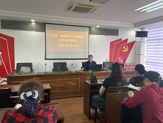 為普及健康知識(shí),傳播健康理念,全面提升社區(qū)居民的健康素養(yǎng)水平,9月21日上午9點(diǎn),南京市江寧區(qū)江寧街道盛江社區(qū)文體在社區(qū)會(huì)議室開(kāi)展了“服務(wù)群眾 你點(diǎn)我送”體育運(yùn)動(dòng)進(jìn)社區(qū) ——“健康生活方式與慢性病預(yù)防”講座。
