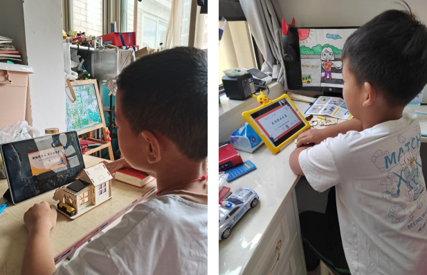 隨后,志愿者在線遠(yuǎn)程講解、演示太陽(yáng)能小木屋手工制作步驟。為了讓小朋友們更好地掌握制作技巧,志愿者細(xì)致地分解每個(gè)組裝、拼接步驟。在志愿者的引導(dǎo)下,小朋友們紛紛開動(dòng)腦筋,自己動(dòng)手將散落的零件逐漸拼裝成完整的太陽(yáng)能小木屋。作品組裝完成后,小朋友們的臉上都露出了自豪的笑容。