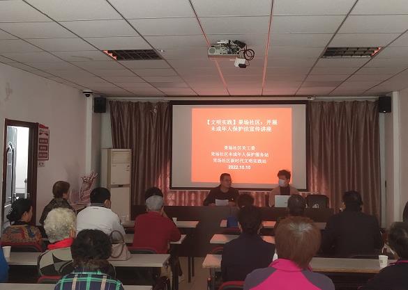 2022年10月10日,南京市棲霞區(qū)馬群街道果場(chǎng)社區(qū)依托新時(shí)代文明實(shí)踐站,組織社區(qū)黨員、家長(zhǎng)居民在社區(qū)三樓活動(dòng)室開展了未成年人保護(hù)法宣傳講座,就其中“家庭保護(hù)”與“社會(huì)保護(hù)”兩章內(nèi)容進(jìn)行了宣傳。