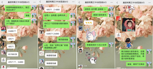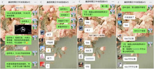 活動(dòng)伊始,廟莊村工作人員與活動(dòng)人員共同觀看《中國,從哪里來?》科普視頻,“大家認(rèn)真觀看,特別是有些數(shù)據(jù)的、年份的,可以著重留意一下哦!”在工作人員的提示下,大家全神貫注,緊盯屏幕?;?dòng)問答環(huán)節(jié),大家積極搶答工作人員提出的問題,每一輪前三名答對(duì)問題的村民都能獲得小禮品,活動(dòng)群內(nèi)熱鬧非凡。