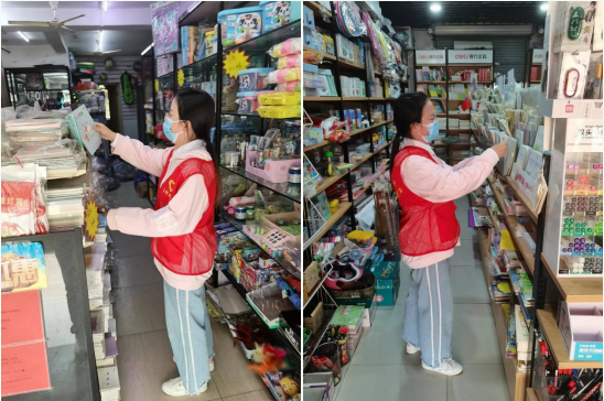 活動中,潤康苑社區(qū)工作者走進轄區(qū)內(nèi)文具圖書店,仔細(xì)檢查店內(nèi)出版書籍是否有黃色、非法內(nèi)容等,查看是否有以未成年人為主要對象的有害“口袋本”圖書、卡通畫冊和宣揚淫穢、色情、暴力等損害兒童身心健康的非法出版物,是否銷售侵權(quán)盜版違禁圖書等。社區(qū)工作人員表示,“希望轄區(qū)內(nèi)的文具圖書店能與社區(qū)攜手,共同守護青少年健康成長,倡導(dǎo)青少年多讀書、讀好書、善讀書。”