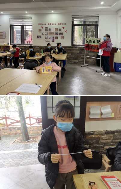 為了讓學(xué)生意識到文明的重要性,并在生活與學(xué)習(xí)中努力提高自己的文明修養(yǎng),社區(qū)志愿者以通俗易懂的語言,形象生動的事例,向孩子們講解了文明禮儀在日常學(xué)習(xí)和生活中的重要意義,讓青少年明白了文明禮儀不僅是個人素質(zhì)的體現(xiàn),更是從一定程度上反映了一個家庭、一個小區(qū)、一個社區(qū)的文明素養(yǎng)?;顒舆€安排了閱讀環(huán)節(jié),每人一句文明禮儀小知識,讓孩子們在閱讀的同時加深其對文明禮儀的印象,強(qiáng)化文明意識?;顒幼詈笾驹刚哌€向孩子們發(fā)出倡議,號召大家在日常生活學(xué)習(xí)中遵守文明禮儀、遵守社會秩序,把學(xué)到的文明行為運用到日常的生活之中,讓文明禮儀成為每個青少年的自覺言行。