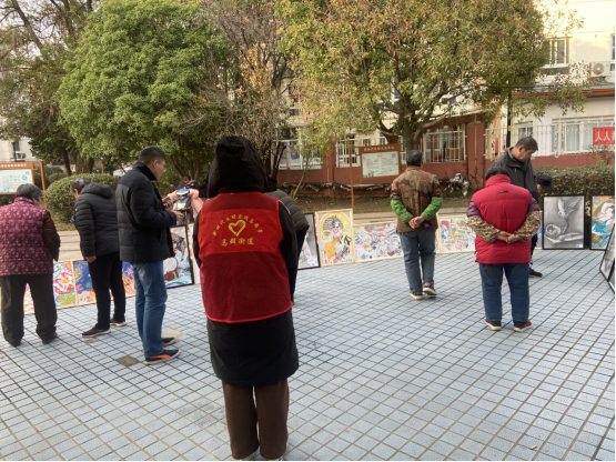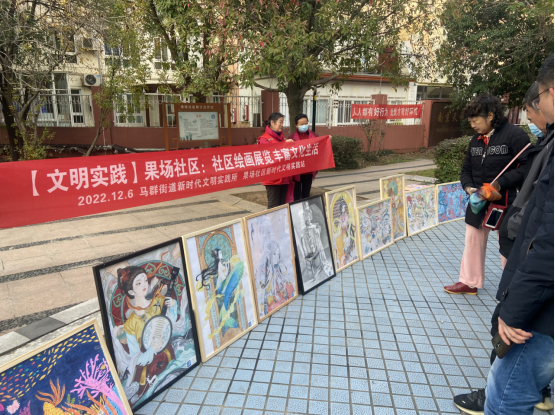 為不斷豐富社區(qū)居民文化生活內(nèi)涵,弘揚(yáng)熱愛生活發(fā)現(xiàn)美好的社區(qū)文化,2022年12月6日起,南京市棲霞區(qū)馬群街道新時代文明實踐所與果場社區(qū)新時代文明實踐站進(jìn)行站所聯(lián)動,依托社區(qū)新時代文明實踐站文化服務(wù)平臺,組織“齊益果”積分制志愿者、黨員、居民在轄區(qū)天悅花園、馬群公寓小區(qū)、陳家院城中村內(nèi)開展“社區(qū)繪畫展覽”志愿活動。