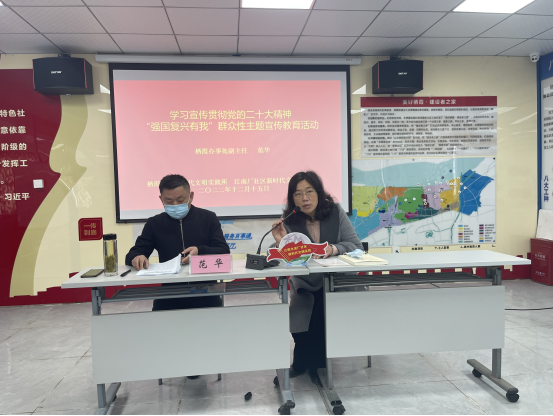 為進(jìn)一步深入學(xué)習(xí)宣傳貫徹黨的二十大精神,加強(qiáng)退休黨員的黨性修養(yǎng)及思想覺悟。12月15日,棲霞區(qū)棲霞街道江南廠社區(qū)黨總支開展學(xué)習(xí)貫徹黨的二十大精神“強(qiáng)國復(fù)興有我”群眾性主題宣傳教育活動(dòng),此次活動(dòng)由棲霞街道辦事處副主任范華主持并宣講,社區(qū)退休黨員、社區(qū)“兩委”成員共計(jì)25人參會(huì)。