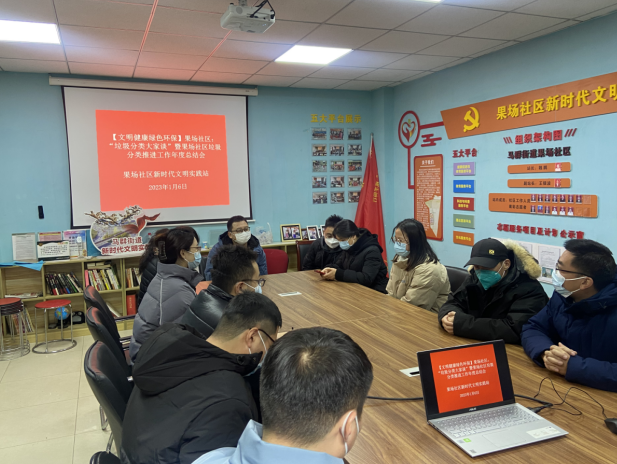 2023年元月6日,南京市棲霞區(qū)馬群街道果場社區(qū)依托新時代文明實踐站,在社區(qū)一樓會議室召開“垃圾分類大家談”暨果場社區(qū)垃圾分類推進工作年度總結(jié)會。社區(qū)垃圾分類推進小組、環(huán)保負責(zé)人、“齊益果”積分制志愿者、黨員、居民代表廣泛參與,旨在總結(jié)2022年的工作經(jīng)驗,更好推動新一年社區(qū)垃圾分類工作更好更實。
