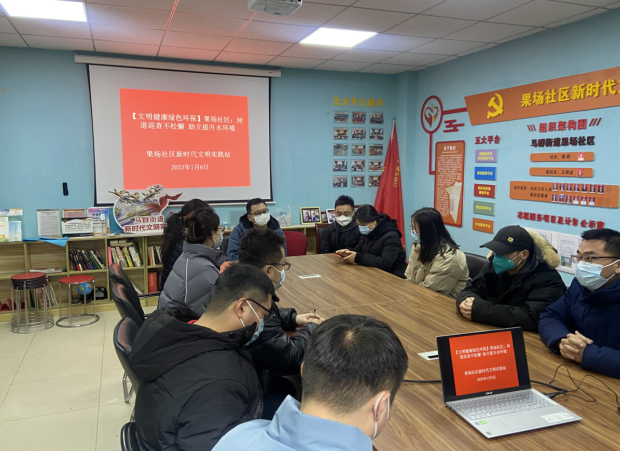 2023年元月6日上午,南京市棲霞區(qū)馬群街道果場社區(qū)依托新時(shí)代文明實(shí)踐站,組織社區(qū)環(huán)保工作者、“齊益果”巡河小分隊(duì)志愿者在社區(qū)一樓會議室開展主題為“河道巡查不松懈 助力提升水環(huán)境”的社區(qū)河道巡查會議。會議旨在春節(jié)前強(qiáng)化對轄區(qū)河道的巡查力度,對目前河道存在的問題進(jìn)行梳理解決。