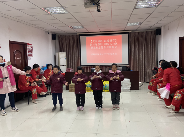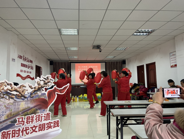 在活動現(xiàn)場,來自社區(qū)居民學(xué)校的舞蹈隊的志愿者們以兩個舞蹈節(jié)目作為開場。她們用燈籠舞點燃大家迎接新春佳節(jié)的熱情,以扇子舞的清風(fēng)愉快表達對即將來臨的春天氣息的期盼。在綽約的舞姿中,現(xiàn)場的黨員、居民們紛紛鼓掌,現(xiàn)場的氣氛十分歡樂。