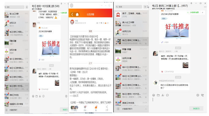 微信群內(nèi),居民紛紛點贊社區(qū)的貼心分享,互相交流著自己閱讀后的感受體會,對于文筆優(yōu)美的段落還會著重進(jìn)行推薦。本次線上全民閱讀分享會大大激發(fā)了居民的閱讀興趣,豐富了社區(qū)居民的生活,進(jìn)一步營造了“好讀書、讀好書、讀書好”的濃厚氛圍。