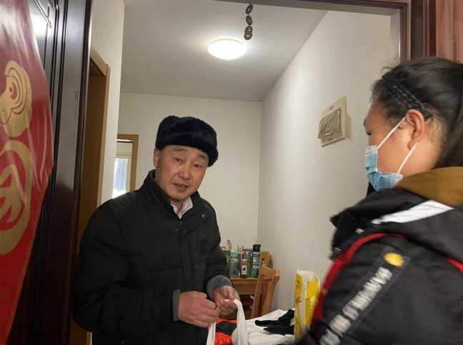 每到一戶,新時代文明實踐站志愿者都會詳細詢問居民的身體狀況和生活起居,傾聽他們的心聲,叮囑他們要注意防寒保暖、保重身體,并為他們送上了慰問品,細心講解自我防疫的必要性。小小的慰問品讓居民切實感受到社區(qū)大家庭的溫暖,困難居民也連連感謝政府的幫助。