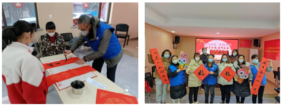 無聯(lián)不成春,有聯(lián)意才濃。社區(qū)網(wǎng)格員邀請轄區(qū)老幼書法志愿者書寫春聯(lián)福字,一刻兒福字有了,春聯(lián)有了,年味也有了!一副副紅紅火火的春聯(lián),一個個飽滿的“福”字,滿含迎接新春到來的喜悅之情。