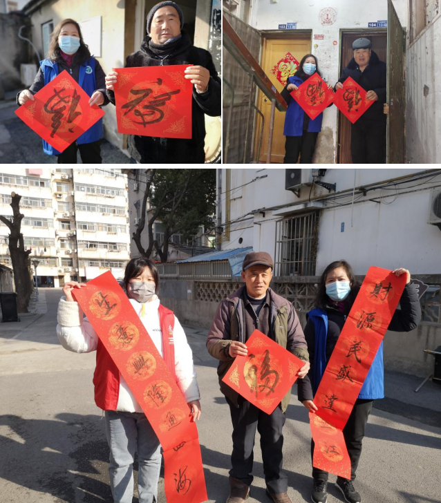 一大早,社區(qū)工作人員就拿著寫好的春聯(lián)和福字,敲開了一戶戶居民的家門,“我們來給您送新春的春聯(lián)和福字,祝福您新的一年健康平安、順順利利!”居民們拿到寫滿祝福和美好祝愿的春聯(lián),臉上洋溢著幸福的笑臉,居民感動地說,天氣這么冷,社區(qū)干部不畏嚴寒,給我們送春聯(lián),把祝福送到我們手上,非常暖心。一副副春聯(lián),載滿了新年的美好祝愿,一張張燦爛的笑臉,暖和了冬日的社區(qū)。