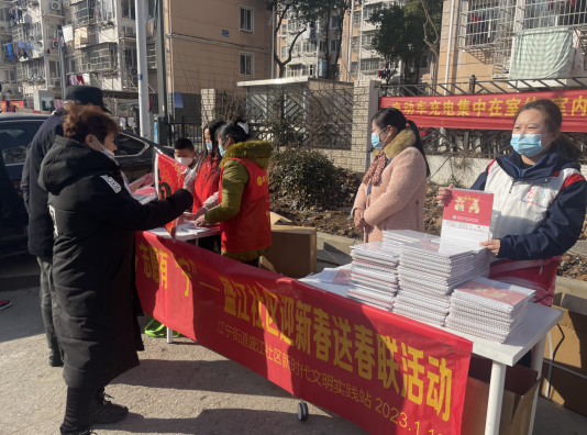 貼春聯(lián)是中國人過年必不可少的一部分,它代表的不僅是喜慶,還寄托了人們對新年的期望?;顒又?,盛江社區(qū)工作人員、網(wǎng)格員、社工,一同為社區(qū)居民發(fā)放飽含新春祝福的春聯(lián)以及迎新納福的臺歷。一對對春聯(lián)、一個個臺歷是濃濃的年味,是對老百姓奔向更美好、更幸福生活的祝福,傳遞著新時代文明和諧的新風(fēng)尚。居民收到臺歷后感受到社區(qū)的關(guān)心關(guān)愛,向工作人員表示感謝,本次累計發(fā)放春聯(lián)126套,臺歷500份。