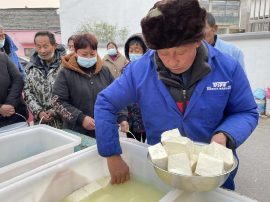“豆腐代表‘多福’,年糕寓意‘年年高’,希望通過這么一份新春禮包,向村民送去美好的新年祝愿,祝福所有的村民新的一年多福多喜,幸福指數(shù)年年攀升。”牌坊村相關(guān)負責人介紹到。此外,牌坊村還為村內(nèi)80歲、90歲以上老人每人分別準備了300元、500元新年慰問金,祝福他們福壽安康。