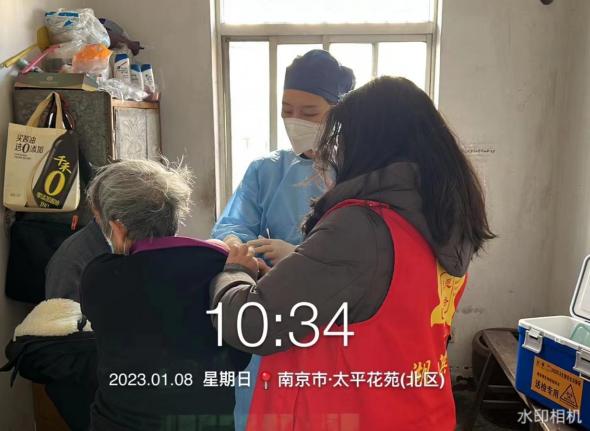 為加快構(gòu)筑老年人免疫屏障,近日,南京市江寧區(qū)秣陵街道湖濱社區(qū)積極開(kāi)展80周歲老人上門接種新冠疫苗志愿服務(wù)工作,社區(qū)新時(shí)代文明實(shí)踐志愿者踴躍參與。