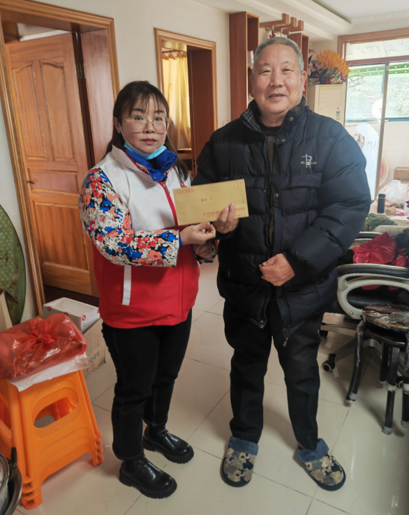 活動中,工作人員與困難群眾親切交談,噓寒問暖,在送上祝福的同時,也鼓勵他們克服眼前困難,堅定生活信心,并叮囑他們保重身體,有困難及時向社區(qū)反映,社區(qū)也會盡最大的努力幫助他們走出困境。最后,大家為他們送上慰問金,表達(dá)黨和政府的牽掛之情。