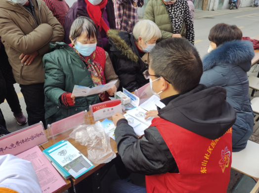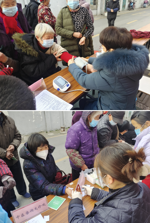 活動現(xiàn)場,工作人員為老年居民們測血壓、測血糖,發(fā)放防癌、抗癌的宣傳材料,向老年人們講授科學知識,傳授科學運動方法,宣傳防癌、抗癌健康生活理念。