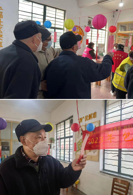 猜燈謎環(huán)節(jié)中,一盞盞顏色鮮艷的燈籠、一道道妙趣橫生的謎題出現(xiàn)在眼前,大家饒有興致,有的冥思苦想,有的熱情交談,相互討論著謎底。