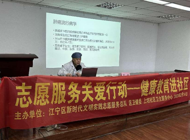更進(jìn)一步增強(qiáng)居民健康意識(shí)、普及健康知識(shí)、傳播健康理念,同時(shí)加強(qiáng)對(duì)新冠患者“陽康”后的宣傳教育,緩解廣大居民的焦慮,減輕心理壓力,2月14日下午14:30,在南京市江寧區(qū)東山街道大里社區(qū)新時(shí)代文明實(shí)踐站、大里社區(qū)紅十字、科協(xié)聯(lián)合開展“普及醫(yī)療知識(shí) 喚醒健康人生”健康促進(jìn)服務(wù)進(jìn)社區(qū)活動(dòng) ,活動(dòng)邀請(qǐng)上坊衛(wèi)生服務(wù)中心區(qū)衛(wèi)陳祺主任以肺癌病因及預(yù)防篩查、“新冠病毒‘陽康‘后注意事項(xiàng)”及為主題的健康教育宣傳活動(dòng)?;顒?dòng)現(xiàn)場(chǎng)特別邀請(qǐng)了轄區(qū)內(nèi)困難居民、殘疾人、退休老人等50多名居民參加。